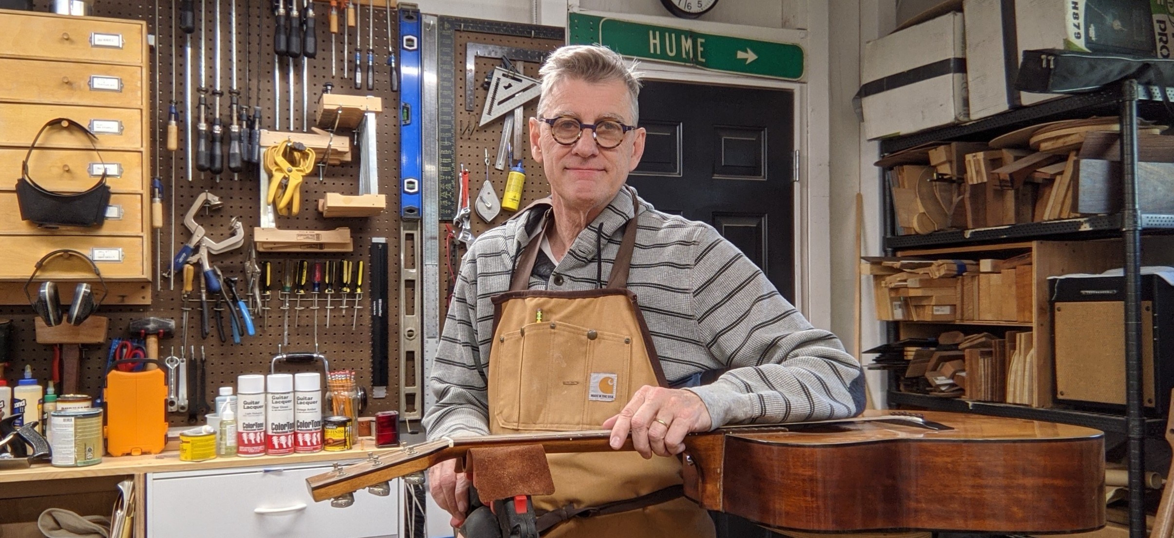 I’m a self-taught luthier, starting out twenty years ago by fixing my own instruments, then began working on repairs for friends. I’ve repaired everything from inexpensive ukes to $10,000 custom guitars.